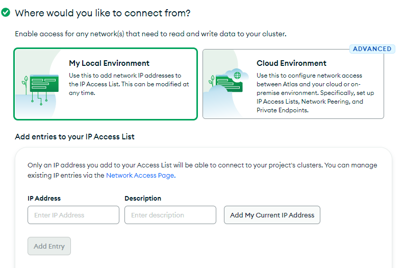 우선은 'Add My Current IP Address' 를 클릭하고 넘어간다.